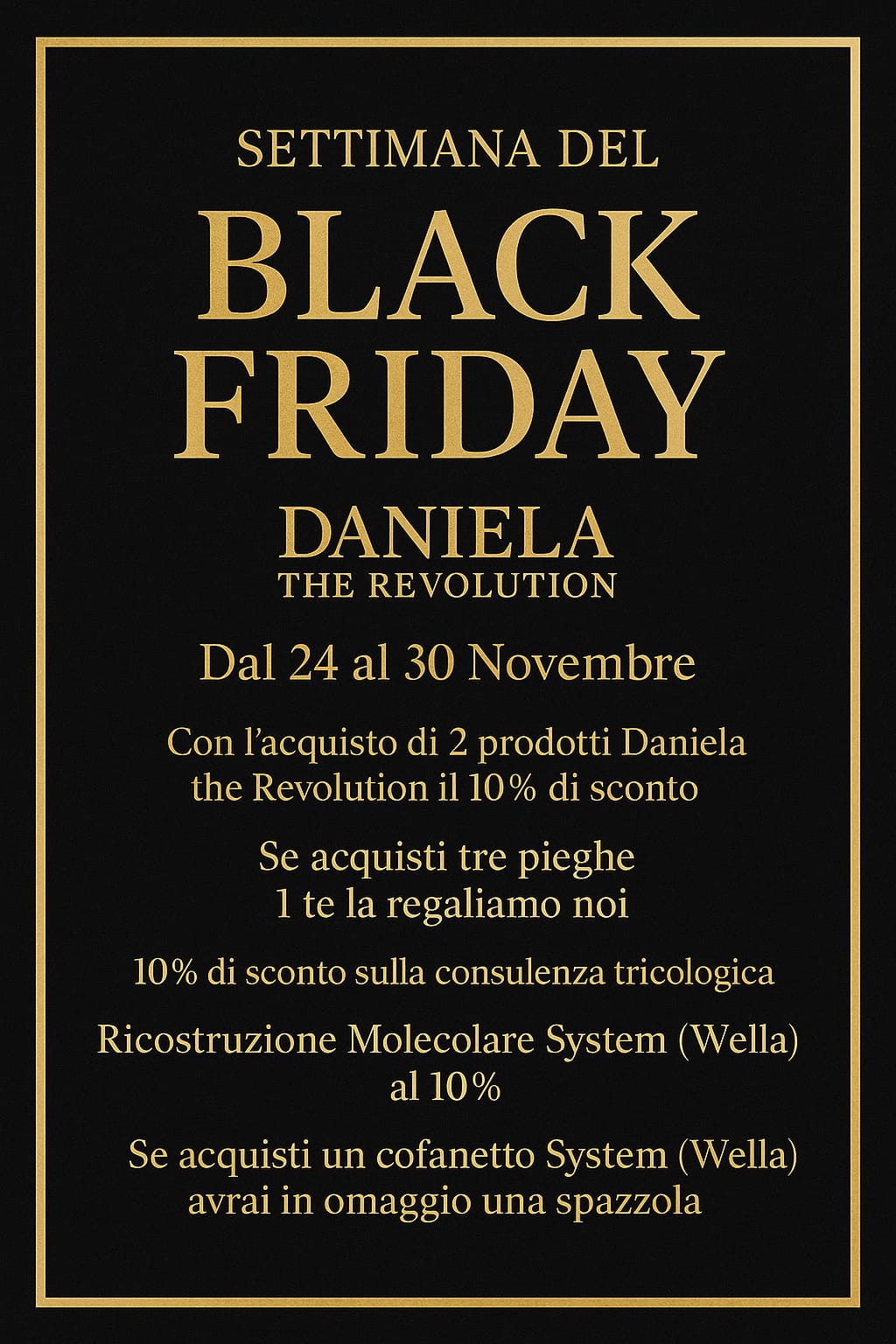 È arrivata la settimana più attesa dell’anno! 🖤Dal 24 al 30 Novembre, il reparto Hairstylist Daniela The Revolution ti coccola con super offerte …