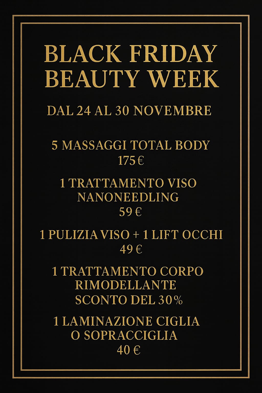 🖤 BLACK FRIDAY BEAUTY WEEK ✨Dal 24 al 30 Novembre lasciati coccolare dai trattamenti esclusivi del nostro Reparto Estetica Daniela The Revolution. …