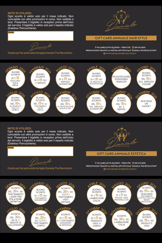 Un anno intero di vantaggi esclusivi, dedicati a chi sceglie Daniela The Revolution!Siamo felici di presentarvi le nuovissime Gift Card 2026, …